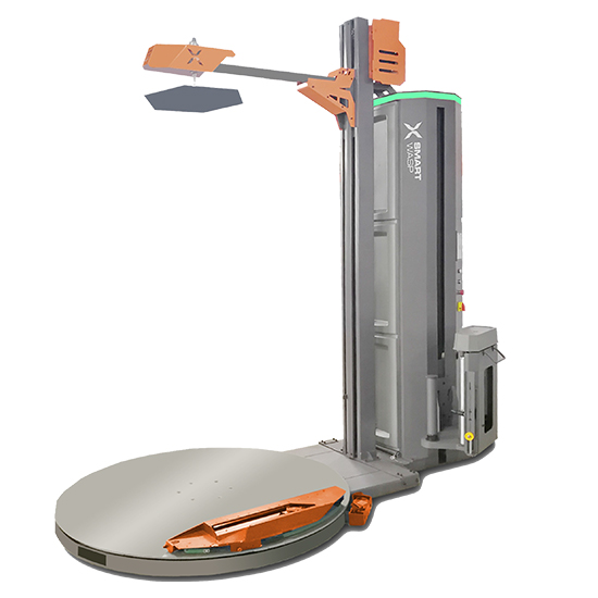 借助缠绕膜拉伸后的回缩力将产品进行缠绕包装,形成一个紧凑的、不占空间的单元整体,使产品各托盘紧密地包裹在一起,可有效地防止运输过程中产品的相互错位与移动,同时可调整的拉伸力可以使硬质产品紧贴,使软质产品紧缩,尤其是在烟草业以及纺织业中有独特的包装效果。